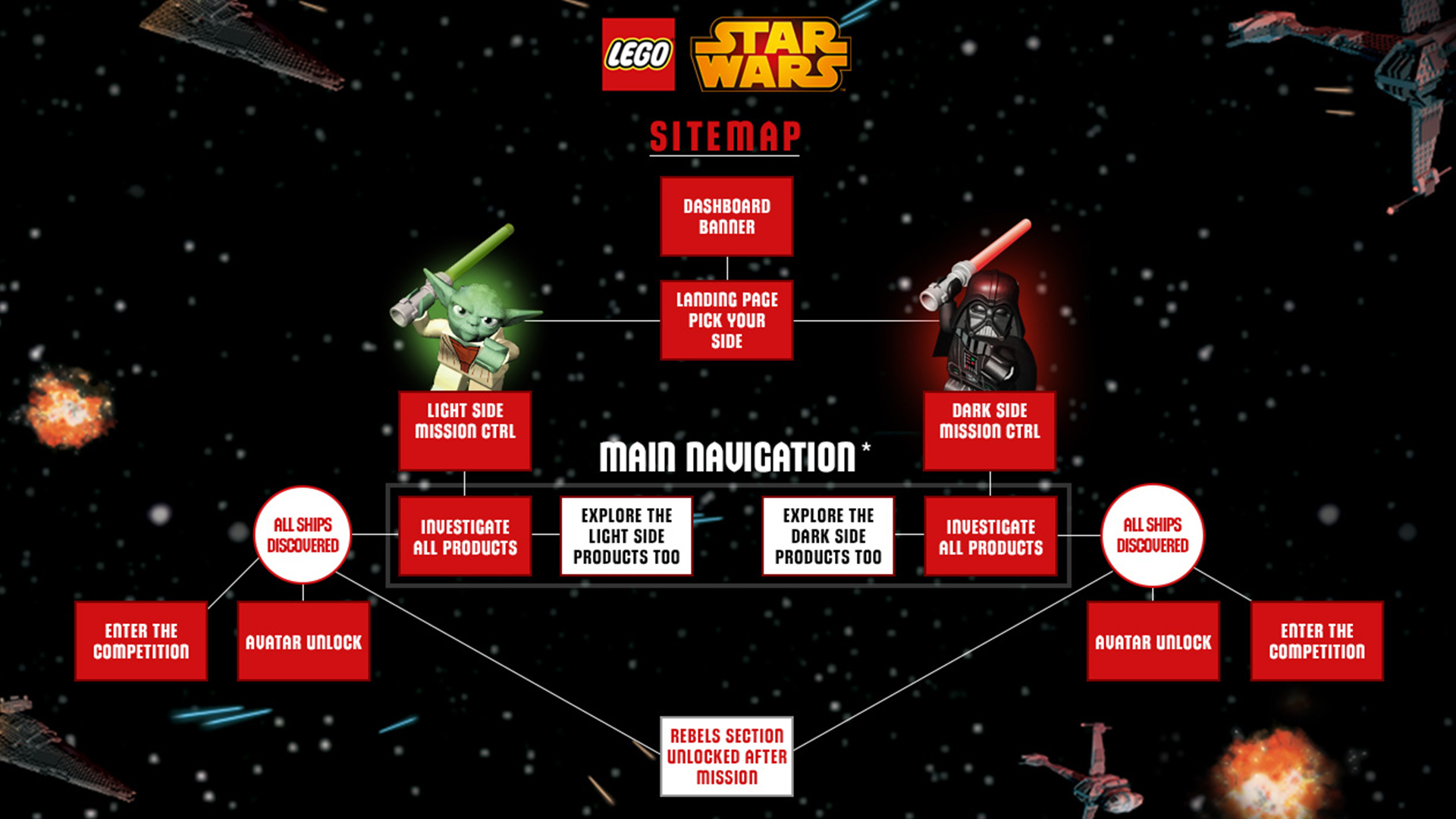 I directed and designed an interactive Star Wars universe where users could explore and choose a side of the Force. The experience allowed players to engage with the world while discovering products organically, including the ability to “spy” on the opposing side. The journey was completed with unique digital content rewards, turning the campaign into an engaging and effective success story.